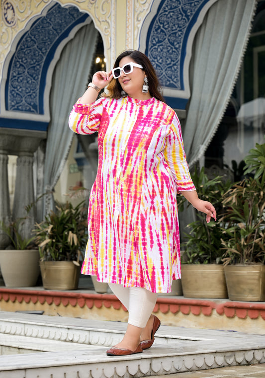Pink Yellow Tie-Dye Front Slit 'A' Line Kurta