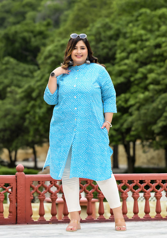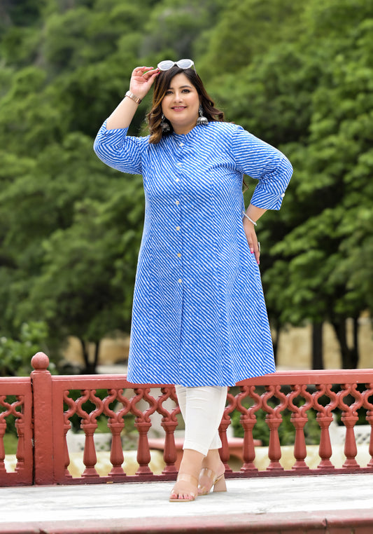 Blue Lehriya Front Slit 'A' Line Kurta (Cotton)