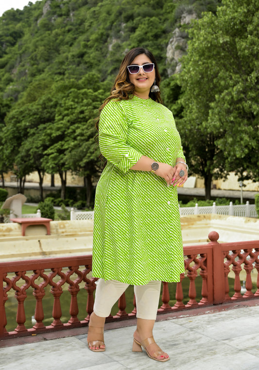 Green Lehriya Front Slit 'A' Line Kurta (Cotton)