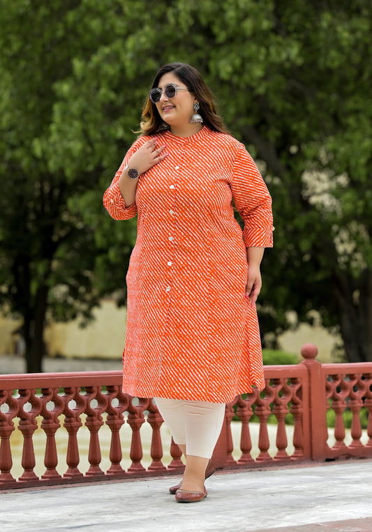 Orange Lehriya Front Slit 'A' Line Kurta (Cotton)