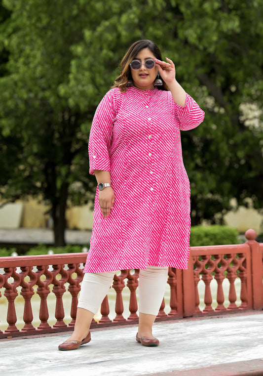 Pink Lehriya Front Slit 'A' Line Kurta (Cotton)
