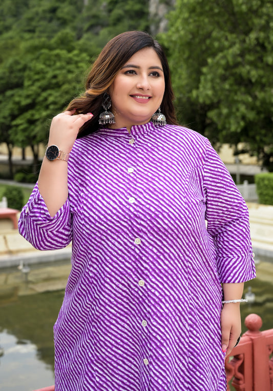 Purple Lehriya Front Slit 'A' Line Kurta (Cotton)
