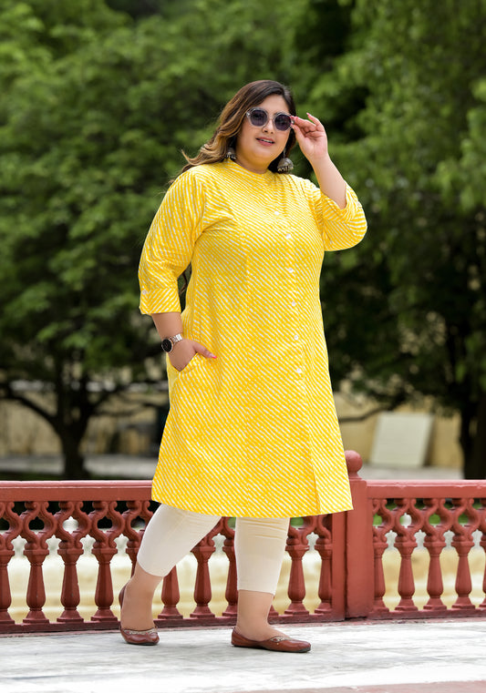Yellow Lehriya Front Slit 'A' Line Kurta (Cotton)