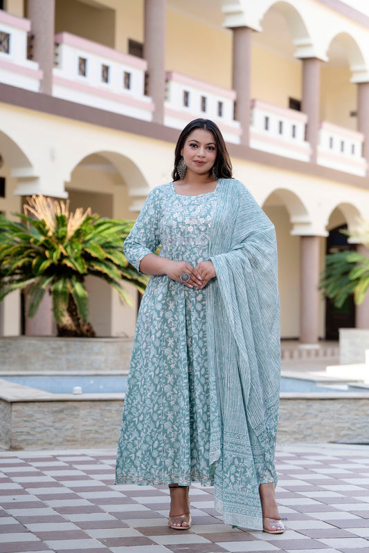Green Anarkali Kurta Dupatta Set