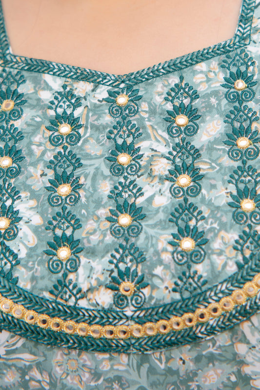 Teal Blue Anarkali Kurti With Hand Work