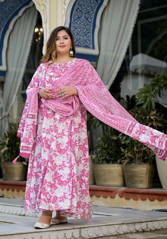 Pink Anarkali Kurta Dupatta Set