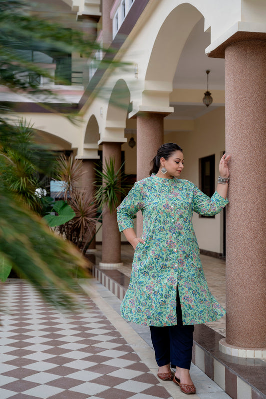 Mint Green Pure Cotton 'A' Line Kurta