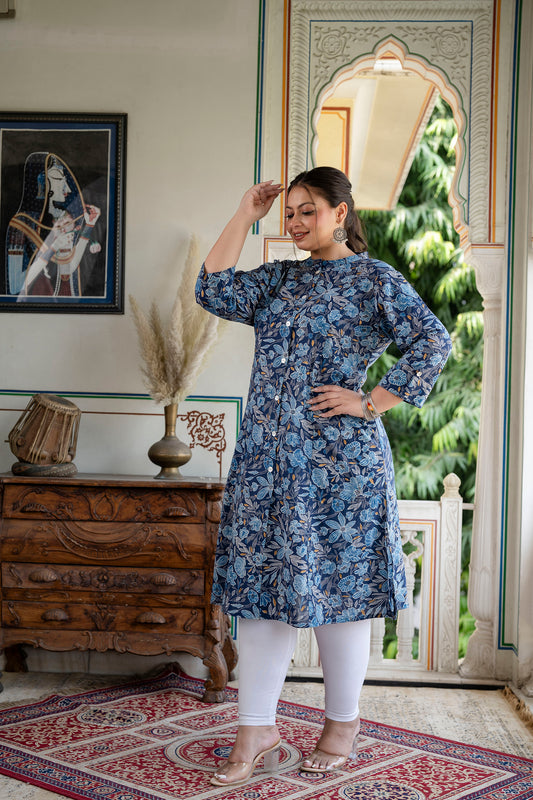 Blue Pure Cotton 'A' Line Kurta