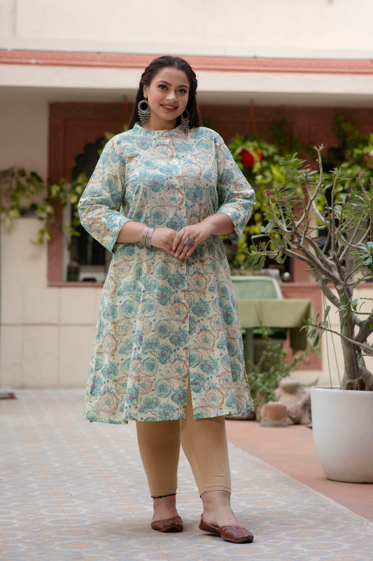 Sea Green Front Slit 'A' Line Kurta (Cotton)