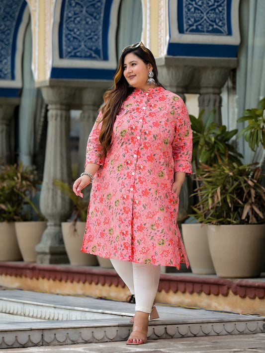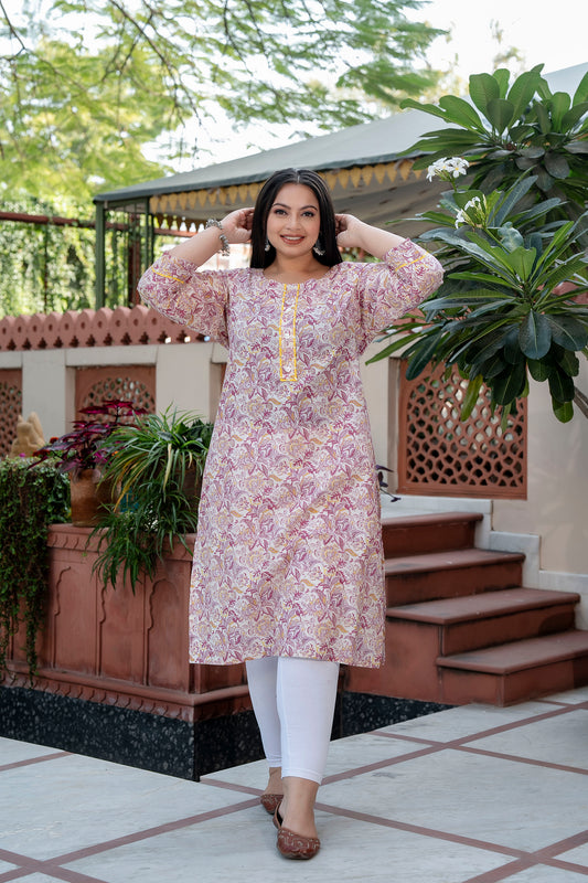 Pink Printed Pure Cotton Straight Kurti