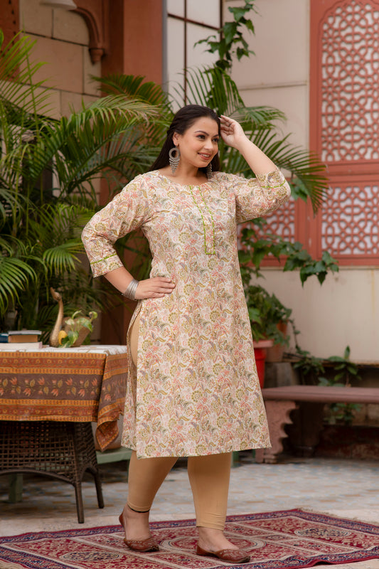 Light Yellow Printed Pure Cotton Straight Kurti