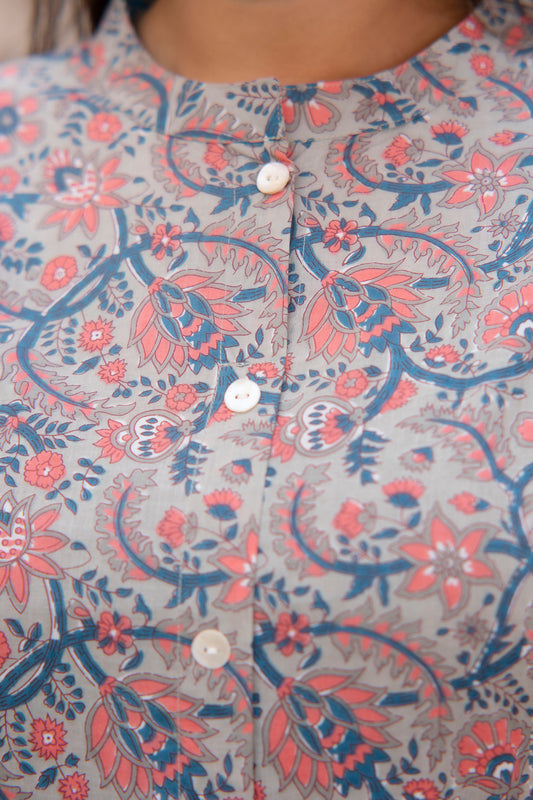 Light Grey Pure Cotton 'A' Line Kurta