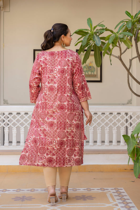 Pink Lehriya Front Slit 'A' Line Kurta (Cotton)