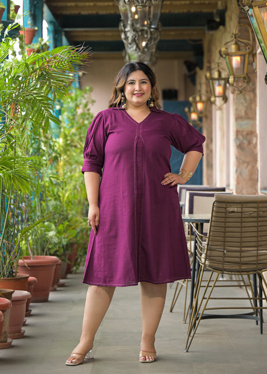 Magenta Solid Cotton Midi Dress