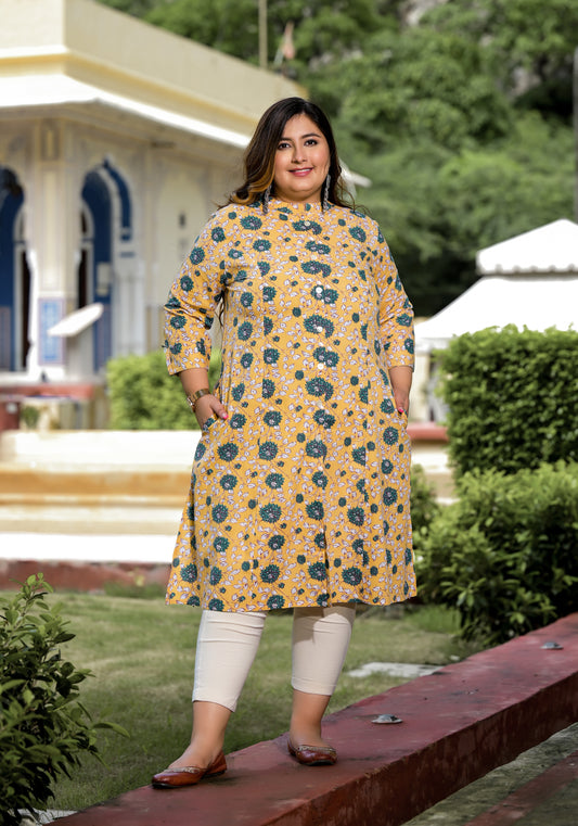 Yellow Front Slit 'A' Line Kurta (Cotton)