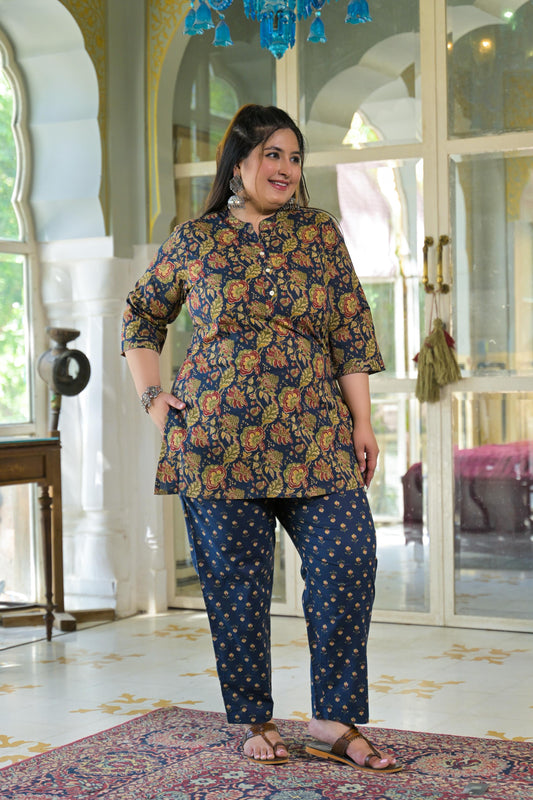Navy Blue Floral Print Pure Cotton Co-Ord Set