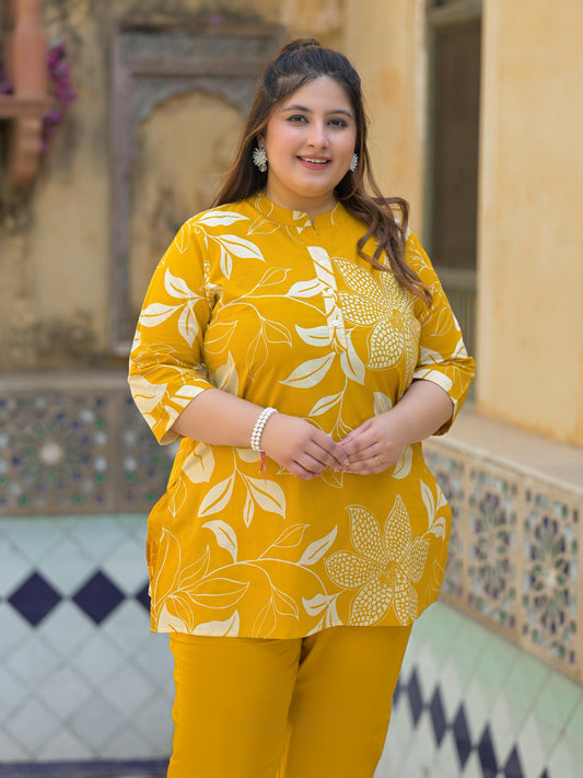 Yellow Floral Print Pure Cotton Co-Ord Set