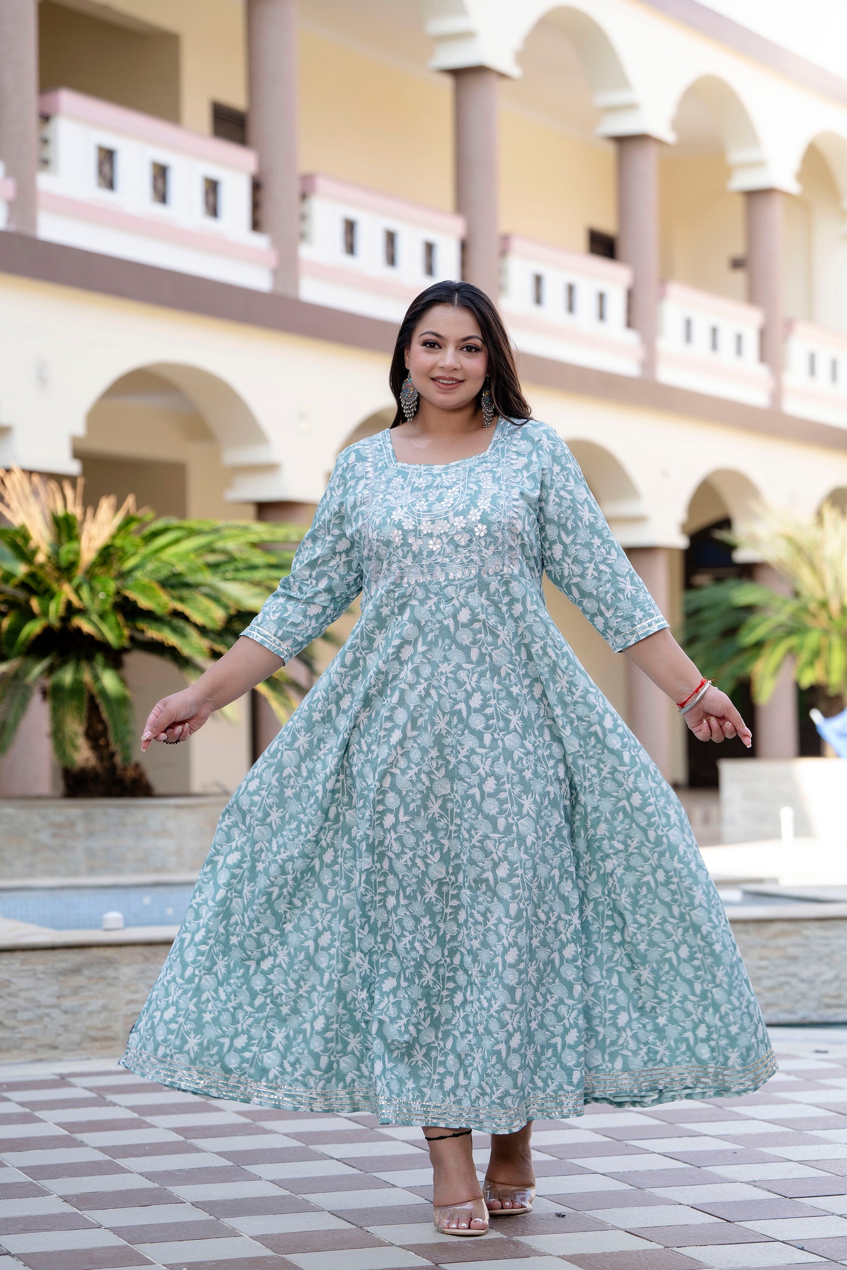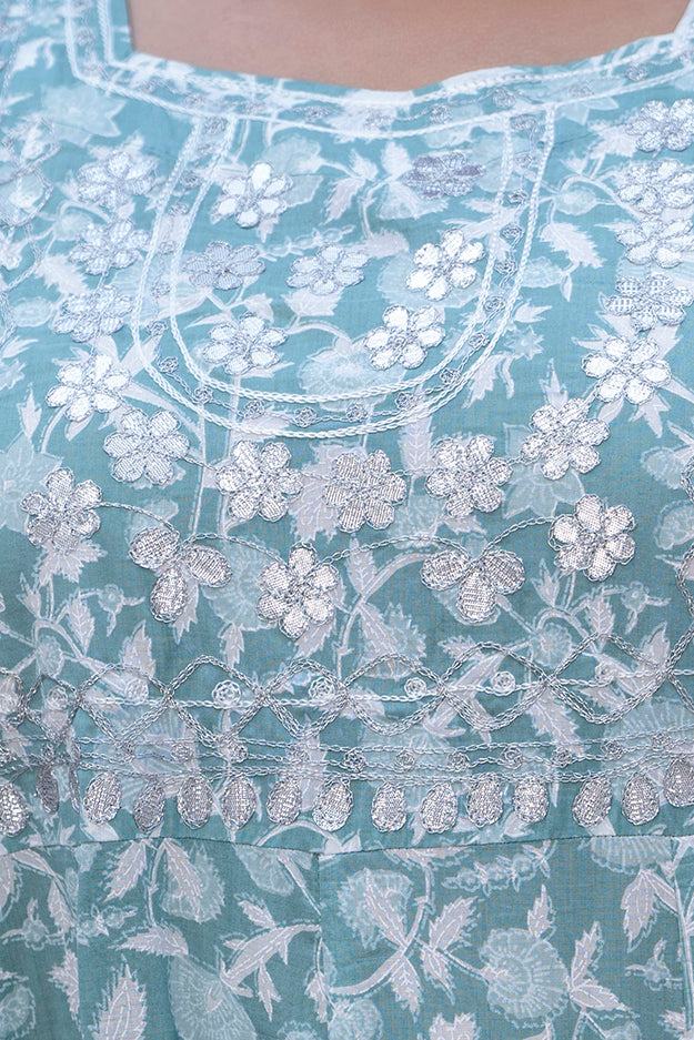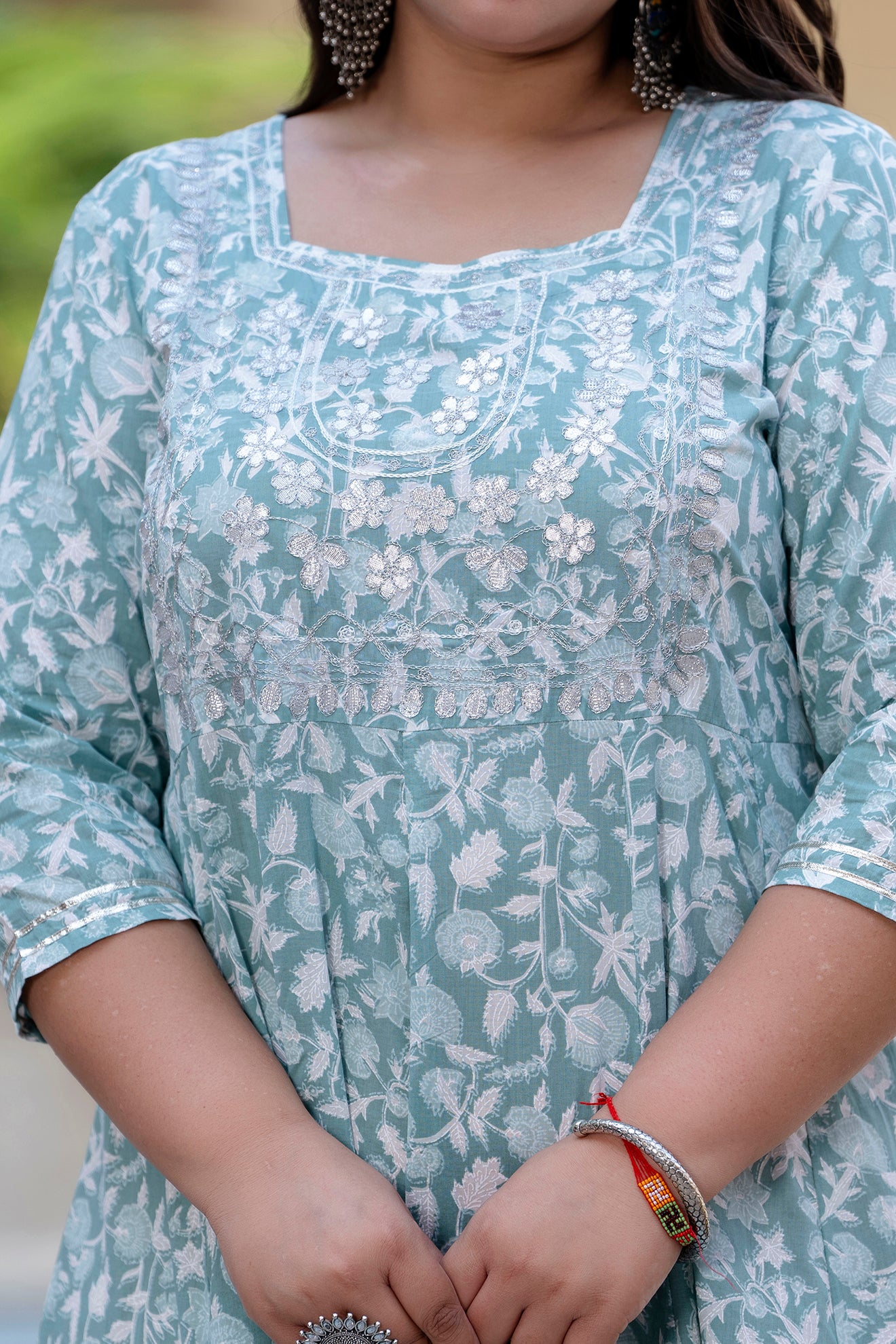 Sky Grey Embroidered Anarkali Kurta & Dupatta Set